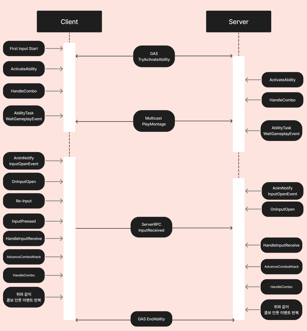 클라이언트에서 콤보를 진행시 서버는 ActivateAbility 함수만 실행되어 클라이언트의 콤보가 진행중
