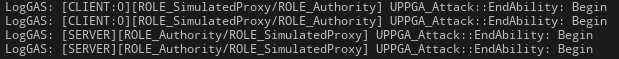 서버의 공격 어빌리티가 종료되면 클라이언트의 어빌리티도 같이 종료되는 모습을 볼 수 있다